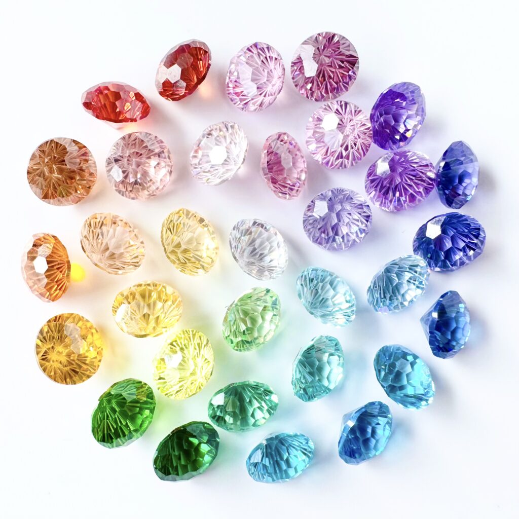 ラボ環境で育成された、色域と品質の安定した宝石素材。デザイン用途や数量に応じた選定・ご相談に対応しています。
